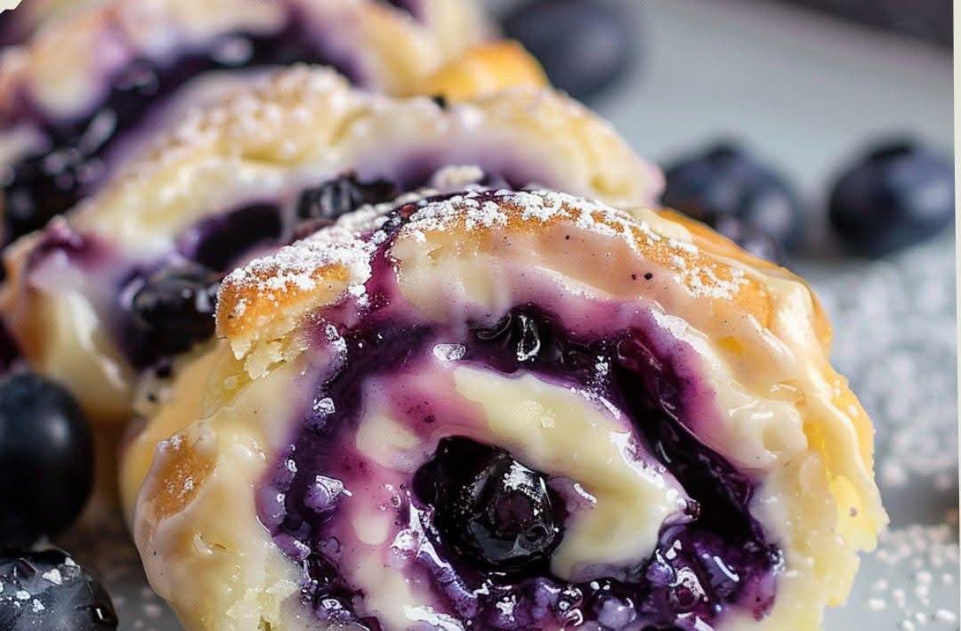 These warm, golden rolls are filled with sweet cream cheese and juicy blueberries — soft inside, slightly crisp outside, and drizzled with a vanilla glaze. They taste like a bakery treat but take only minutes to prepare!