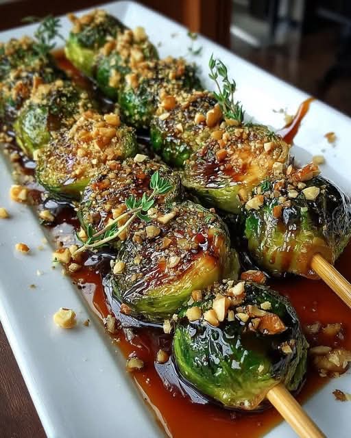 Caramelized Brussels Sprouts Christmas Skewers with Walnut Honey