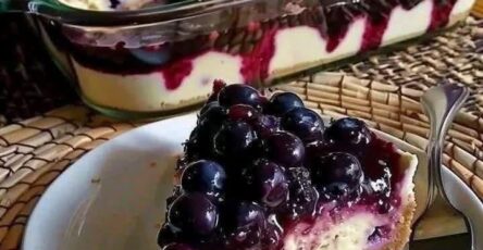 This creamy no-bake blueberry cheesecake is proof that you don’t need complicated techniques to create a show-stopping dessert. With its silky texture, buttery base, and vibrant fruit topping, it’s guaranteed to impress every time—whether you’re hosting guests or simply treating yourself.