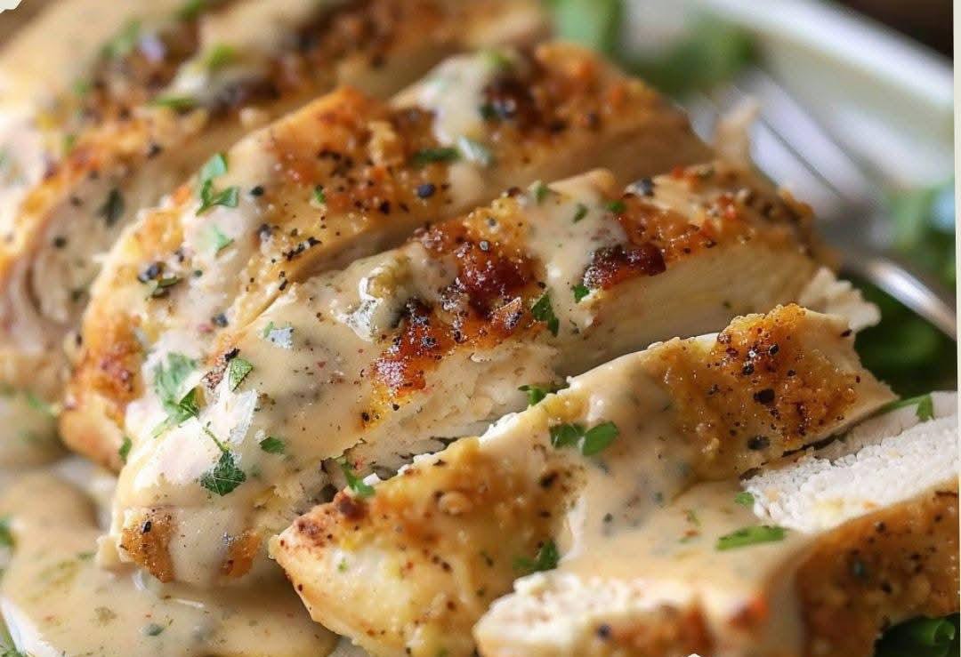 Pat the chicken breasts dry with paper towels. Season both sides with garlic powder, onion powder, and black pepper. - Make the creamy Caesar mix: