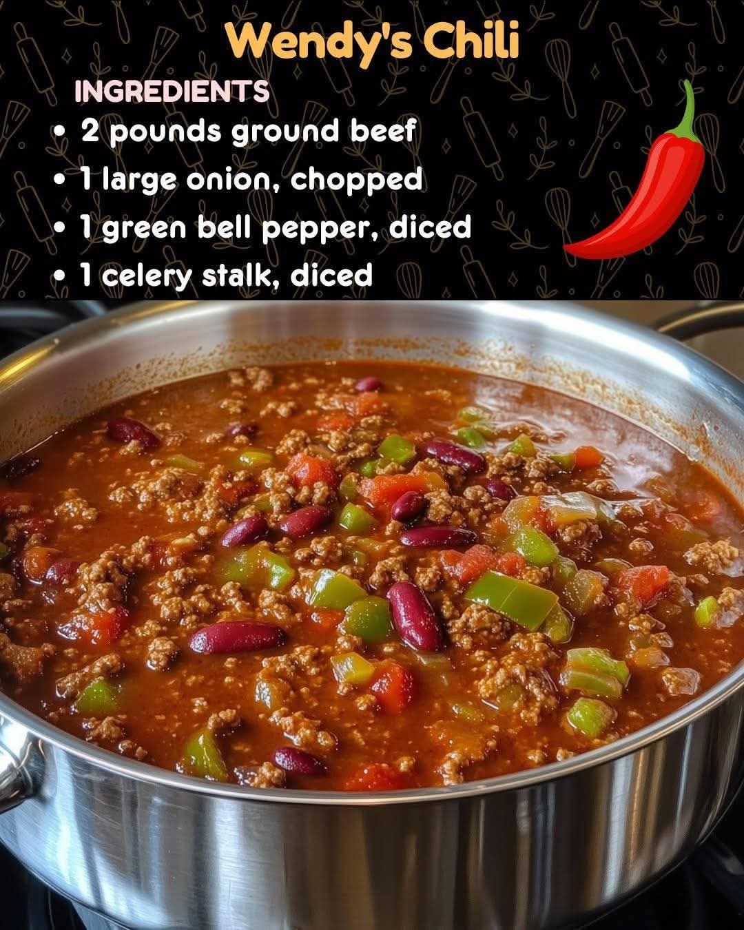 A warm, hearty, and deeply comforting pot of chili that tastes exactly like the famous bowl from Wendy’s—rich beef, tender beans, slow-simmered tomatoes, and that signature chili seasoning that makes every spoonful satisfying. This recipe is easy, budget-friendly, and perfect for meal prep, winter nights, or big family dinners.